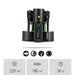 - มาพร้อมแบตเตอรี่แบบชาร์จ ขนาด AAA 2 ชุด และแท่นชาร์จ