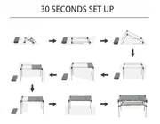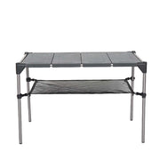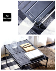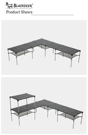 โต๊ะพับอลูมิเนียมจาก Blackdeer เหมาะสำหรับการพกพาไปแคมป์ ด้วยขนาดที่พับแล้วเล็ก ยาวเพียง 56 cm. หนัก 1.5 ก.ก. วัสดุเป็นอลูมิเนียมสามารถทนความร้อน และตากฝนได้สบายๆ มีชั้นวางของด้านล่างสามารถใส่สิ่งของเพื่อไม่ให้เกะกะบนโต๊ะ สามารถซ้อนกันเพื่อดัดแปลงเป็นชั้นวางของ สามารถต่อกันให้ยาวขึ้นด้วยอุปกรณ์เสริม และมีเสาตะเกียงเฉพาะรุ่นอีกด้วย