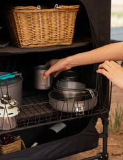 โต๊ะเก็บของ แบบพกพาพับตั้งแคมป์อลูมิเนียม ไว้ใส่เครื่องครัว เสื้อผ้า และอุปกรณ์แคมปิ้ง ให้เป็นระเบียบมากขึ้น