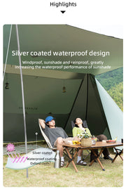 ทาร์ปในรูปแบบ Shelter ที่จะกลายเป็นศูนย์กลางของแคมป์ที่ทุกคนใช้ร่วมกันได้ ไม่ว่าจะเป็นการพักผ่อน ทำอาหารหรือทานข้าวร่วมกัน มาพร้อมเสาอลูมิเนียมและสมอบกครบชุด ผลิตด้วยผ้า 210D Oxford Ripstop เคลือบ PU 2000 mm กันน้ำได้เป็นอย่างดี