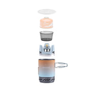 ชุดเตาพร้อมหม้อที่ออกแบบมาให้ใช้งานร่วมกันได้อย่างตัว ด้วยหม้อขนาด 1 ลิตร ที่สามารถแพคเก็บเตาและแก๊สกระป๋องขนาด 110 กรัม ไว้ด้านในได้ ตัวเตากันลมได้ดี พร้อมด้วยก้นหม้อที่มี Heat Exchanger ช่วยให้กระจายความร้อนได้เร็วและประหยัดพลังงาน จุดเตาได้ง่ายด้วยที่จุดในตัว