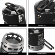 ชุดเตาพร้อมหม้อที่ออกแบบมาให้ใช้งานร่วมกันได้อย่างตัว ด้วยหม้อขนาด 0.8 ลิตร ที่สามารถแพคเก็บเตาและแก๊สกระป๋องขนาด 110 กรัม ไว้ด้านในได้ ตัวเตากันลมได้ดี พร้อมด้วยก้นหม้อที่มี Heat Exchanger ช่วยให้กระจายความร้อนได้เร็วและประหยัดพลังงาน จุดเตาได้ง่ายด้วยที่จุดในตัว มาพร้อมขาวางหม้อ ทำให้สามารถจับหม้อหรือกระทะอื่นๆ ได้  ให้คุณทำอาหารได้อย่างหลากหลาย