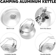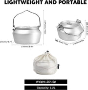 กาน้ำร้อนขนาด 1.2 ลิตร ที่ผลิตด้วยโลหะทั้งหมด สามารถใช้ได้ทั้งบนเตาและบนกองไฟ น้ำหนักเบา ขนาดพอเหมาะ สำหรับการใช้งาน ระบบฝาแบบพิเศษที่ล็อคทันทีเมื่อยกหูกา ทำให้ยกเทได้ง่ายโดยฝาไม่หลุด