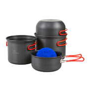 ชุดหม้ออลูมิเนียมน้ำหนักเบาเพียง 448 กรัมเหมาะสำหรับการเดินป่า หรือไปแคมป์แบบง่ายๆ ออกแบบมาสำหรับ 2-3 คน สามารถแพ็คเก็บเป็นชุดได้ ใส่แก๊สกระป๋องซาลาเปาขนาด 230 กรัมและเตาหัวถังขนาดเล็กได้ เก็บเป็นชุดไม่กินพื้นที่ในกระเป๋า
