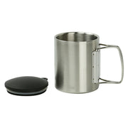 แก้วน้ำแสตนเลสสองชั้น (Double Wall) ขนาดกระทัดรัด สามารถเก็บอุณหภูมิเครื่องดื่มได้นานกว่าปกติ ทั้งร้อนและเย็น หูแก้วพับได้ประหยัดพื้นที่เก็บ มีฝาไว้กันความร้อนออก หรือจะจิบเครื่องดื่มจากฝาก็ได้