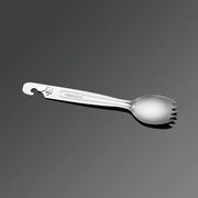 ช้อนไททาเนียมอเนกประสงค์น้ำหนักเบา ที่เป็นได้ทั้งช้อนและส้อม รวมถึงสามารถใช้เจาะกระป๋องแก๊สที่หมดแล้ว เพื่อให้ปลอดภัยในการทิ้ง สะดวกในการพกพาด้วยถุงผ้าสำหรับเก็บที่แถมมาให้ด้วย