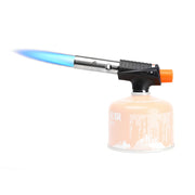 หัวพ่นไฟ ใช้กับแก๊สกระป๋องสั้น (แก๊สซาลาเปา) มีปุ่มกดจุดไฟในตัว สามารถเร่งและลดไฟได้โดยการหมุน ใช้งานสะดวกง่ายดาย เหมาะกับงานแคมป์ สามารถจุดกองไฟได้อย่างง่ายดาย หรือทำอาหารที่ต้องการเผาผิวภายนอก