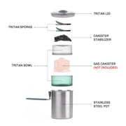 Antarcti Duo ชุดทำอาหารขนาดกะทัดรัด ที่สมบูรณ์แบบสำหรับแคมป์เดี่ยวหรือกลุ่มสองคน เข้ากันได้อย่างลงตัวเพื่อการจัดเก็บ สามารถใส่แก๊สซาลาเปาขนาด 230 กรัมไว้ภายในได้ ประหยัดเนื้อที่ในกระเป๋าของคุณ
