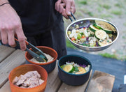 กระทะสแตนเลสที่มีแกนกลางเป็นอลูมิเนียม ช่วยให้มีน้ำหนักเบากว่ากระทะสแตนเลสทั่วไป และให้ความร้อนได้อย่างรวดเร็วและทั่วถึง ทำผิวแบบ Non-Stick ทำอาหารได้สะดวก ไม่ติดกระทะ มาพร้อมด้ามจับที่พับเก็บได้ สะดวกไม่กินที่ เหมาะสำหรับทั้งใช้ที่บ้านและในแคมป์