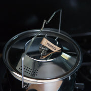 หม้อแสตนเลสพร้อมฝาปิดจาก Primus ที่จับฝาหม้อด้านบนทำจากแผ่นหนังแท้ จับไม่ร้อนมือ สามารถใช้ได้กับเตาทั่วไป มาพร้อมหูสำหรับแขนวนเพื่อใช้กับกองไฟโดยตรงแบบ Open Fire (แขวนหม้อไว้บนกองไฟ) มาพร้อมถุงผ้าสำหรับใส่เก็บ สะดวกในการเดินทาง