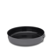 กระทะอะลูมิเนียมเคลือบสารกันติดเซรามิก ที่ทำอาหารได้สะดวกและทำความสะอาดง่าย ด้ามจับสแตนเลสล็อคเข้าที่ขณะใช้งาน และหมุนเก็บใต้กระทะเมื่อต้องการเก็บ