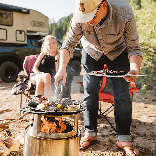View full detailsSolo Stove Campfire เหมาะสำหรับการใช้งานแบบครอบครัว 4-6 คน ใช้กิ่งไม้หรือฟืนท่อนเล็กเป็นเชื้อเพลิงได้อย่างสะดวก มีความมั่นคงในการวางอุปกรณ์ หากใช้ง...