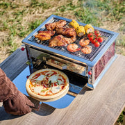 เตาย่าง BBQ แบบวางบนโต๊ะที่ช่วยให้คุณทำอาหารได้อย่างสะดวก และเลื่อนตะแกรงช่วยปรับความร้อนได้ตามใจชอบ ตั้งแต่ 3-10 ซม.ให้คุณทำอาหารได้อย่างตรงใจ มาพร้อมถาดอบพิซซ่าเพิ่มความหลากหลายในการทำอาหาร