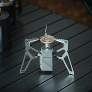 เตาสำหรับแคมป์ปิ้งพับได้ ที่มีวาล์วควบคุมเปลวไฟที่แม่นยำและแผ่นกั้นในตัวเพื่อการปรุงอาหารที่มีประสิทธิภาพ มีน้ำหนักเบาและกะทัดรัด ให้คุณทำอาหารในแคมป์ได้อย่างสะดวก