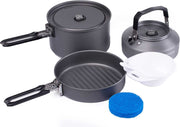 ชุดหม้อและกระทะอลูมิเนียมน้ำหนักเบา ที่ออกแบบมาสำหรับกลุ่ม 2-3 คน สามารถแพ็คเก็บเป็นชุดได้ ไม่กินพื้นที่ในกระเป๋า