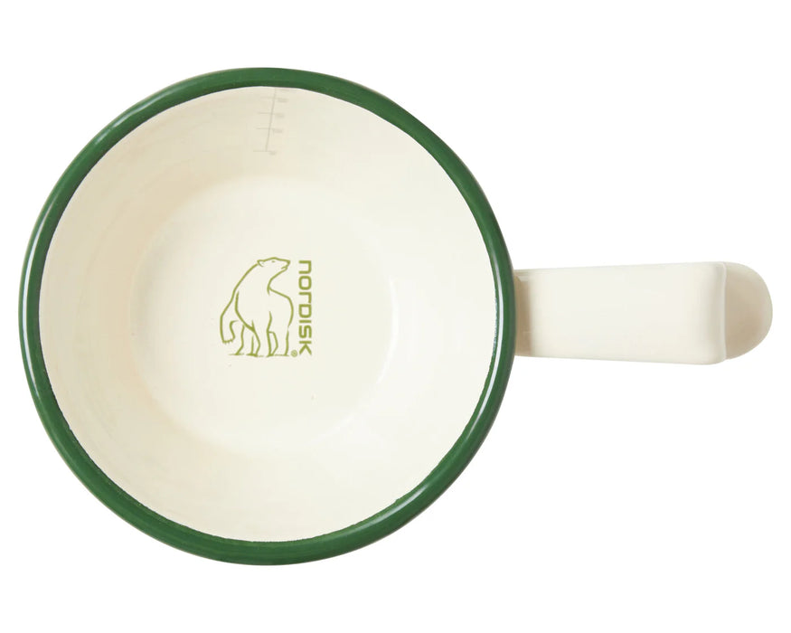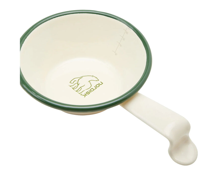 ถ้วย Enamel คลาสสิคมีขีดวัดปริมาตร สามารถใช้ตวงวัดขณะทำอาหารหรือเครื่องดื่มต่างๆ มี 2 สีให้เลือก สีฟ้าดั้งเดิมของ Madam Blå และสีครีมเข้ากับเต็นท์ Nordisk