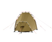 การกางเต็นท์ทำได้รวดเร็วและง่าย ด้วยปลอกเสา 4 จุดและตะขอเกี่ยวเสา ดีไซน์เข้าใจง่าย ใช้เสาน้ำหนักเบาแต่แข็งแรงประกอบเข้าที่ได้อย่างรวดเร็ว ด้านหน้าและด้านหลังสามารถม้วนเปิดได้ ช่วยให้การระบายอากาศดีมากในสภาพอากาศที่ดี Svalbard 1 PU (2.0) จึงเหมาะอย่างยิ่งสำหรับการเดินป่าเพราะพับเก็บได้เล็ก แต่ให้ประสิทธิภาพการใช้งานสูง