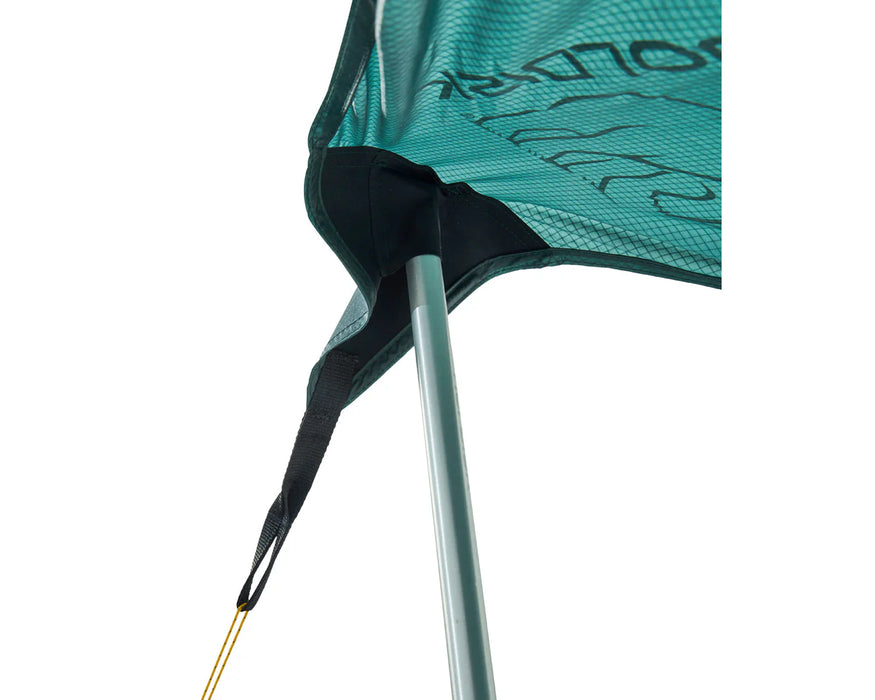 ฟลายชีตขนาด 9 ตารางเมตร วัสดุเบาพิเศษ Nylon 40D Silicon Coating ที่เบาและทนทานกว่าฟลายชีตทั่วไป ไม่เหนียวหรือลอกร่อน ให้อายุการใช้งานที่นานกว่า