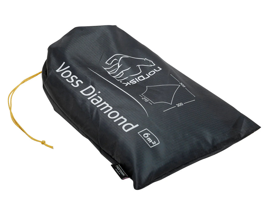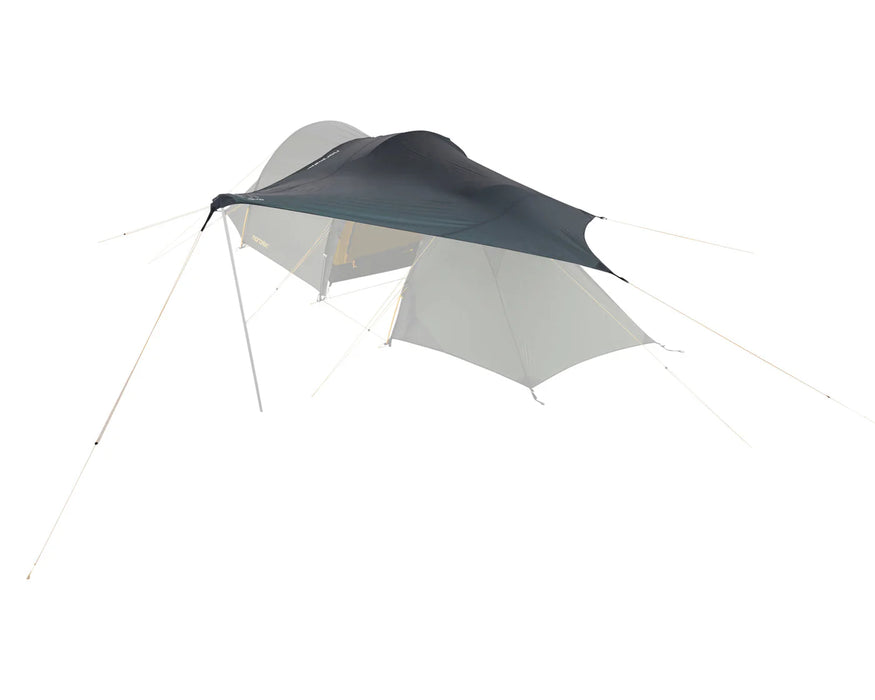 ฟลายชีตน้ำหนักเบาจาก Nordisk ทรง Diamond ขนาด 6 ตารางเมตร ออกแบบมาให้เข้ากับเต็นท์ทรงอุโมงค์ของ Nordisk เช่น Halland และ Oppland สร้างพื้นที่ข้างเต็นท์สำหรับทำอาหารหรือพักผ่อน